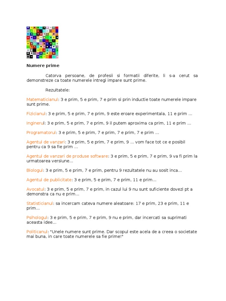 Aceste numere se numesc numere coprime. Cel mai mare divizor comun. în afară de 2 toate numerele prime sunt numere impare. Euclid 300 î hr a demonstrat că tot așa cum mulțimea numerelor naturale sau întregi este infinită tot așa și mulțimea numerelor prime este infinită nu.