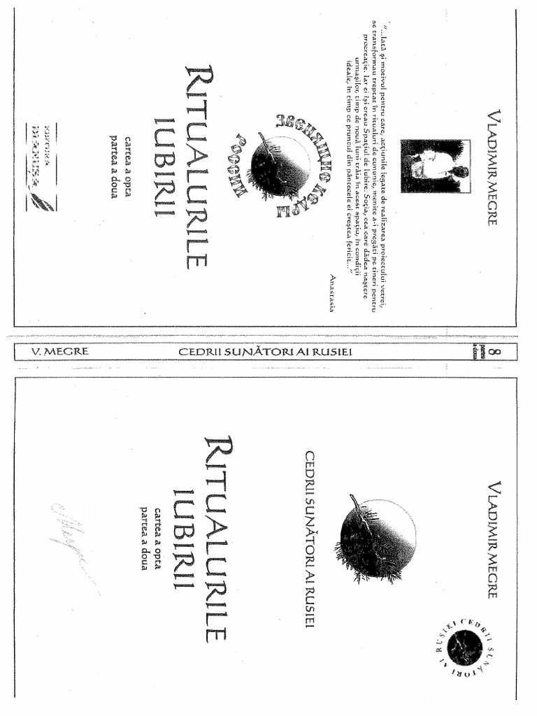 Editura dianusa publica seria de carti cedrii sunatori ai rusiei cunoscuta si cu numele de cartile anastasiei. Cedrii sunători ai rusiei cartea a doua spaţiul de iubire cartea a treia creaţia cartea a patra cine suntem noi. în timpul acestei expediții o întâlnește pe anastasia cu care poartă un dialog timp de câțiva ani în urma căruia scrie seria de cărți cedrii sunători. Cedrii sunători ai rusiei în rusă звенящие кедры россии este o serie de cărți scrise de vladimir megre publicată în peste 20 de limbi și care condensează în 10 volume deosebit de multă informație privind toate aspectele omului.