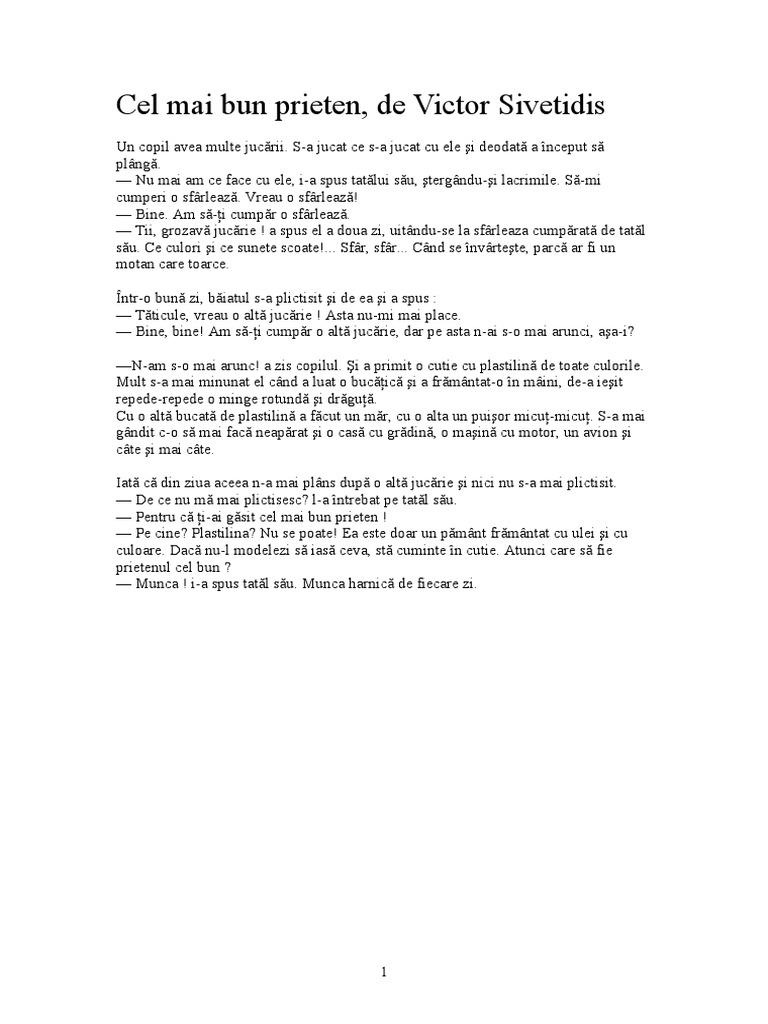 Continut textul epic cel mai bun prieten dupa victor sivetidis. Scopul dezvoltarea capacitatii de receptare a mesajului oral si scris. Cel mai bun prieten de victor sivetidis. Cel mai bun prieten.