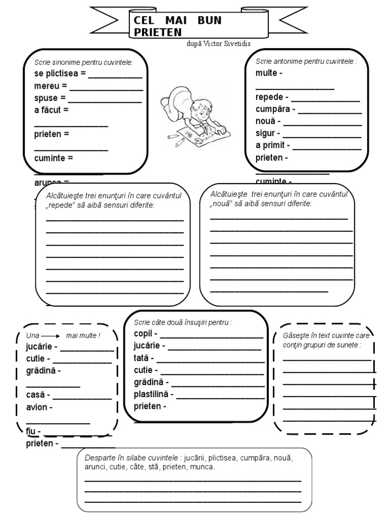Cel mai bun prieten. Un copil avea multe jucrii. Casa a ii a b. Continut textul epic cel mai bun prieten dupa victor sivetidis.