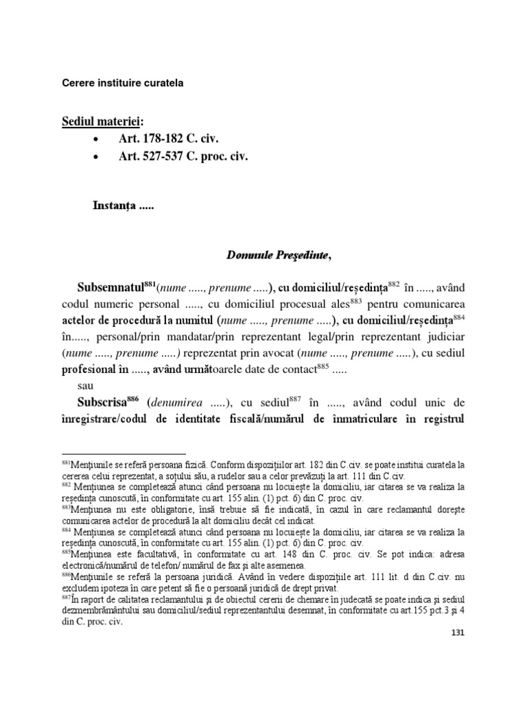 Cerere Instituire Curatela