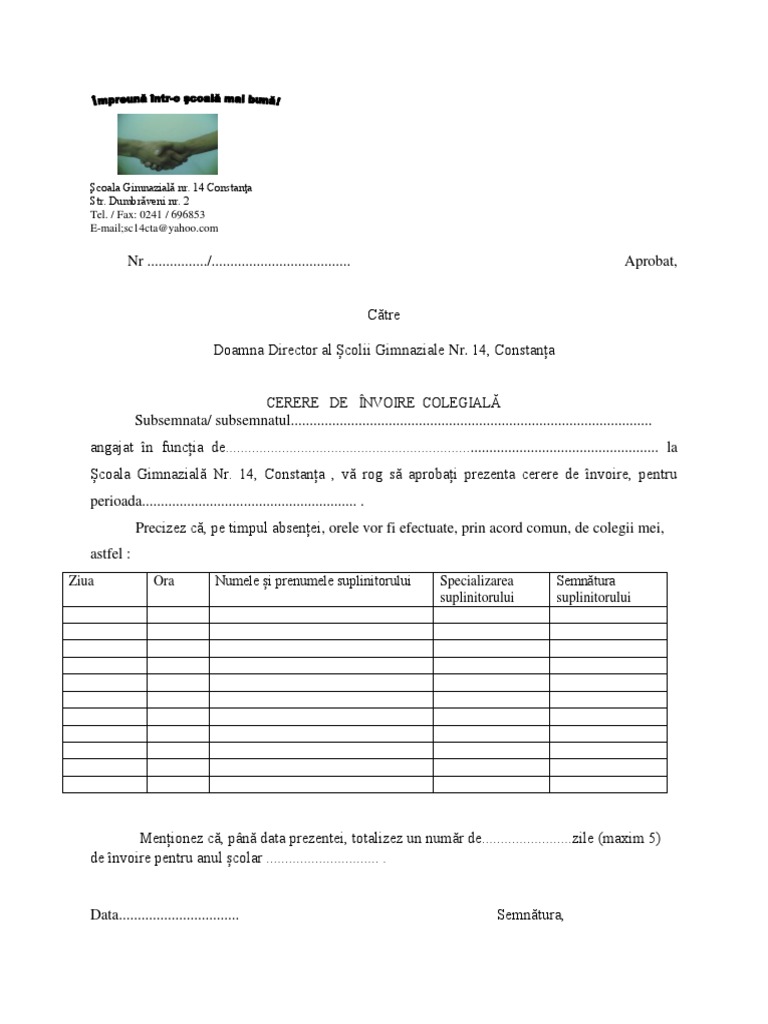 Invoirea De La Ore A Elevilor Model De Cerere Si Obligatii Ale Profesorilor Si Parintilor