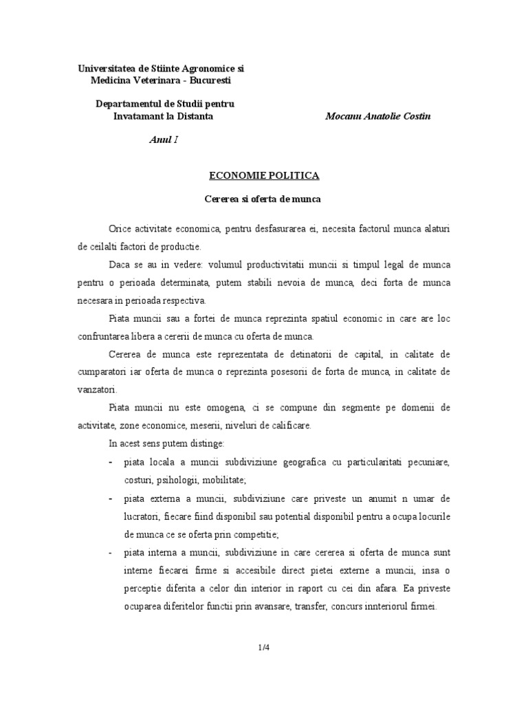Referat Piata Muncii Cererea Si Oferta De Munca 399701 Graduo