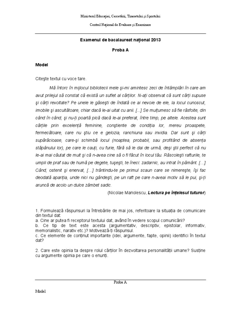 Ce elemente de conńinut importante idei argumente fapte opinii identifici în textul dat. în perioada 11 13 iunie 2012 candidaţii examenului de bacalaureat din acest an vor susţine evaluarea competentelor lingvistice de comunicare orală în limba română proba a. Cine ar putea fi receptorul textului dat având în vedere scopul comunicării. Cine ar putea fi receptorul textului dat având în vedere scopul comunicării.