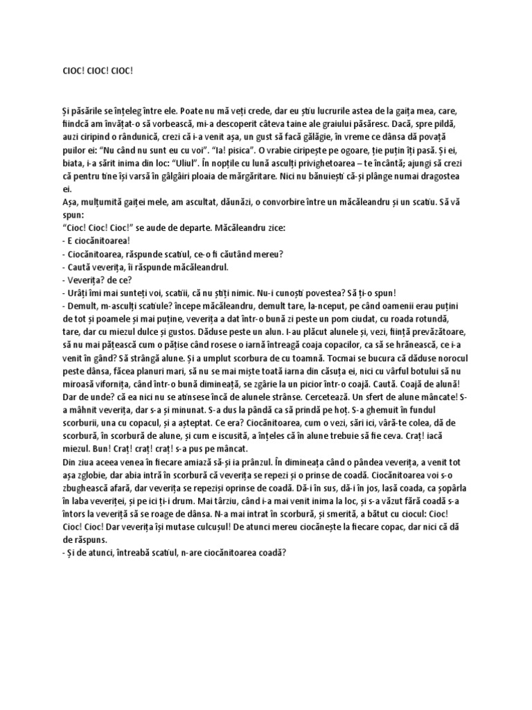 Cioc cioc cioc de emil garleanu mea placut povestea foarte mult 28 2 raspunde. După emil gârleanu. De emil gârleanu repovestire ei nu ştiam că şi păsările au graiul lor. Si paserile se inteleg intre ele.