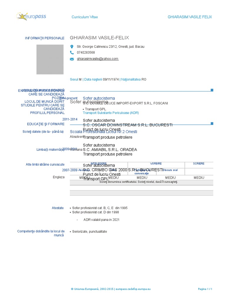 Doc Informaţii Personale Ilincescu Costinel Locul De Munca Pentru Care Se Candidează Poziţia Locul De Muncă Dorit Studiile Pentru Care Se Candidează Inginer Mecanic Ilincescu Costi Academia Edu