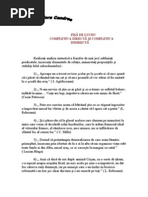 Completiva directa si indirecta. Asta e o prop normala iar complementul direct este exercitiile si astfel se face completiva directa. Completiva directă determină următoarele. 1 mai 2013 09 15. 2 completiva indirecta intrebari.