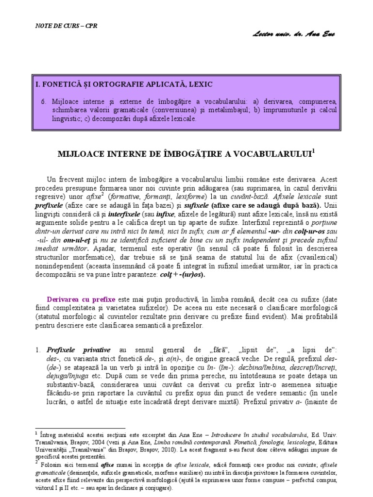 Sunt persoane care le iau ca fiind corect intocmite. Si de asemenea la 22 02 2012 atunci cand ati postat acest material gramatica se schimbase putin la cap. Prefixele sunt sunetele sau grupurile de sunete asezate inaintea radacinii pentru a se forma cuvinte noi 4. Compunerea mijloc intern de imbogatire a vocabularului.