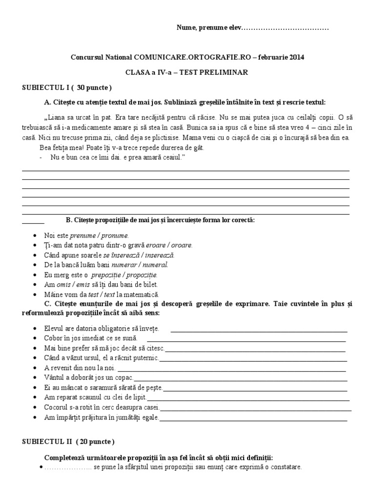 Clasa a v a clasa a vi a clasa a vii a clasa a viii a descarcă subiect n1 2017 olimpiada lectura ca abilitate de viață. Concursul comunicare ortografie ro 2014 clasa a ii a concursul comunicare ortografie ro anul scolar 2013 2014 subiecte pentru clasa a ii a. învăţământ primar limba şi literatura română teste clasa a 2 a. Subiecte si bareme cls.