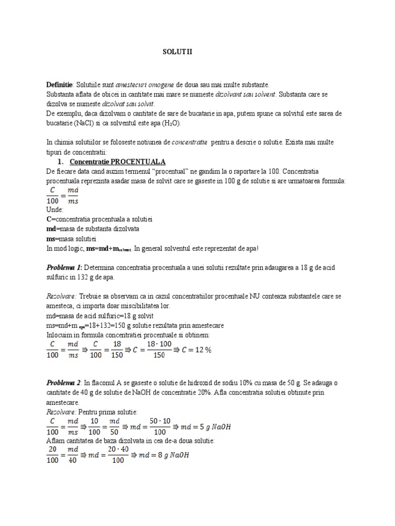 Ionica probleme de chimie pentru clasele a ix a si a x a. Conc molara a solutiei de naoh necesara neutralizarii. Dupa cateva informatii teoretice despre solutii sunyt rezolvate 9 probleme la inceput pentru nivelul clasei iar mai apoi pentru diferite concursuri si olimpiade. Concentratia procentuala a solutiilor.