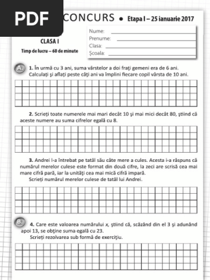 Alte materiale din aceeasi categorie olimpiada satelor din romania etapa judeteana 2020 vi. 1844 etapa i 25 ianuarie 2017. 2780 etapa i 25 ianuarie 2017. Concursul gazeta matematica junior 2017 clasa a ii a.