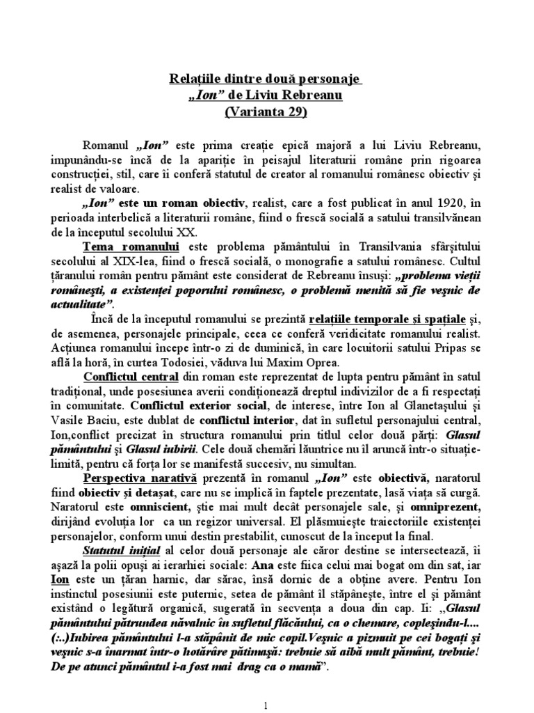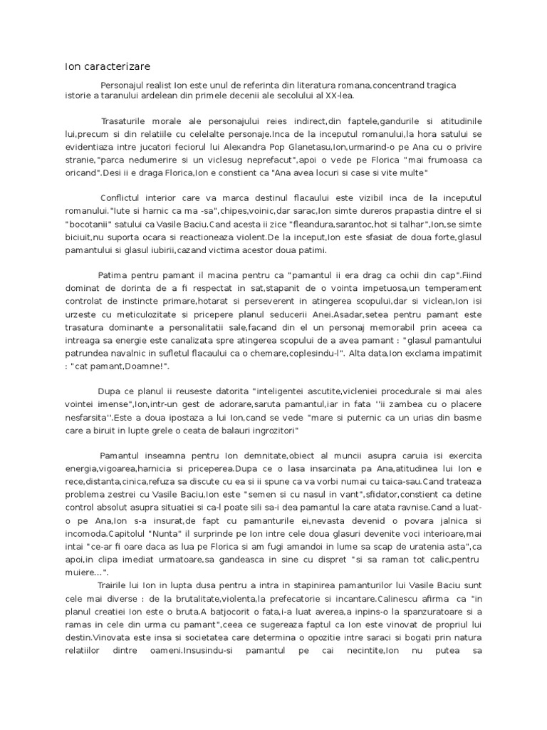 Conflictul exterior social intre ion al glanetasului si vasile baciu este dublat de conflictul interior intre glasul pamantului si glasul iubirii. Fundamentala in caracterizarea sa este surprinderea gesturilor a reactilor organice si a nuantelor vocii in fiecare intalnire cu ion a carui prezenta activeaza latura brutala a fiintei sale. Academia edu is a platform for academics to share research papers.