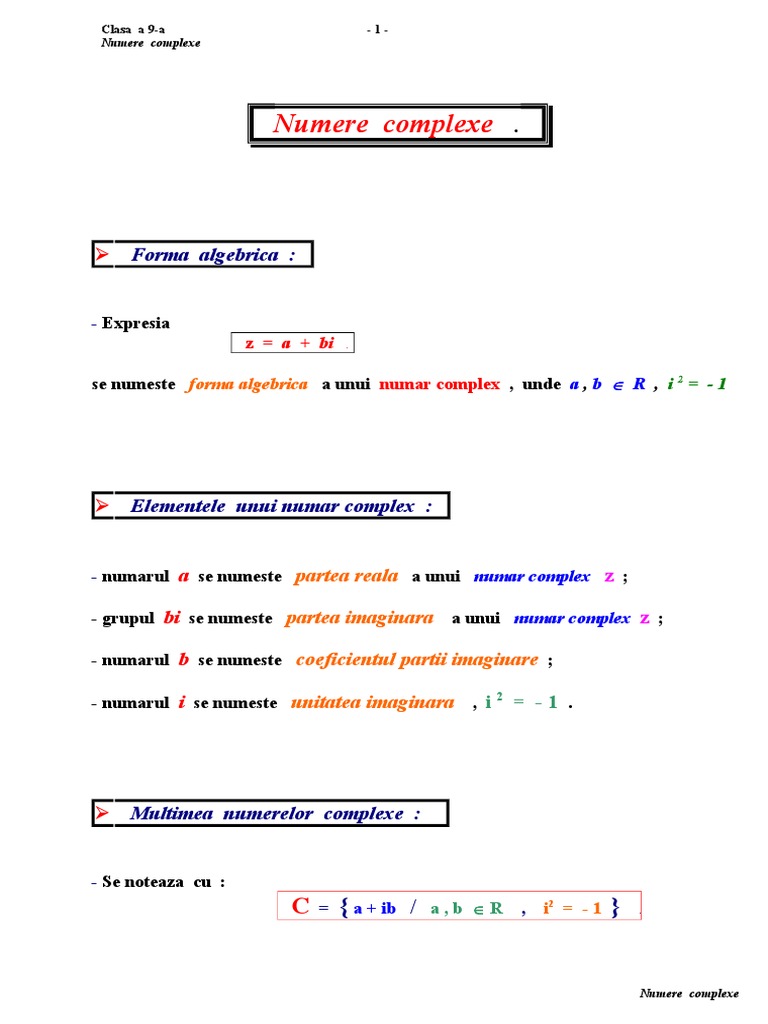 Studiem conjugatul unui numar complex si aplicatii ale numerelor complexe conjugate determinarea formei algebrice a catului.