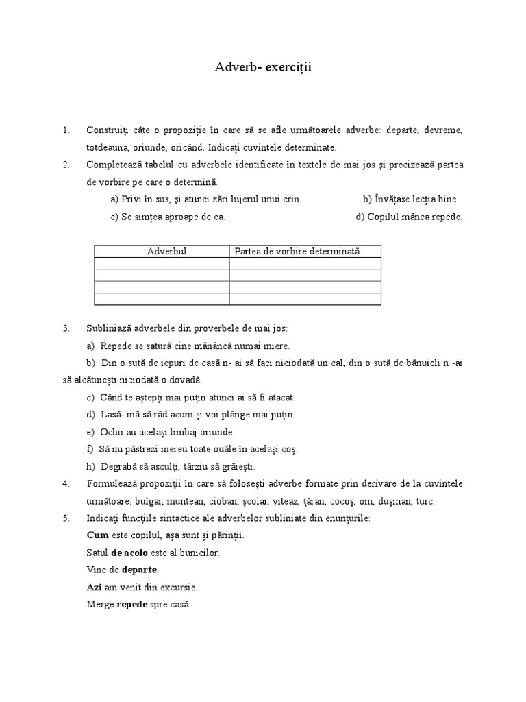 Adverb Exercitii