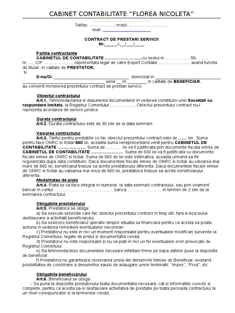 Contract De Prestari Servicii Stomatolog Tehnician Docx