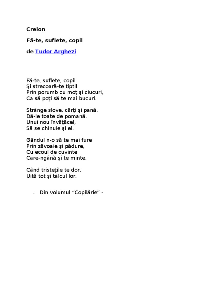 Poezie creion de tudor arghezi. în acest caz materialul nostru îți va fi de folos pentru pregătirea la limba și literatura română. Creion de tudor arghezi o meditație asupra modului în care poetul își privește iubita. Obrajii tăi mi s dragi cu ochii lor ca lacul în care se oglindesc.