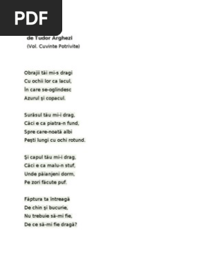 Introducerea cuprinzătoare va convinge profesorul corector încă de la început de faptul că ești bine familiarizat cu subiectul propus. Obrajii tăi mi s dragi cu ochii lor ca lacul în care se oglindesc azurul şi copacul. Versuri creion de tudor arghezi. Creion tudor arghezi obrajii tăi mi s dragi cu ochii lor ca lacul în care se oglindesc azurul şi copacul.